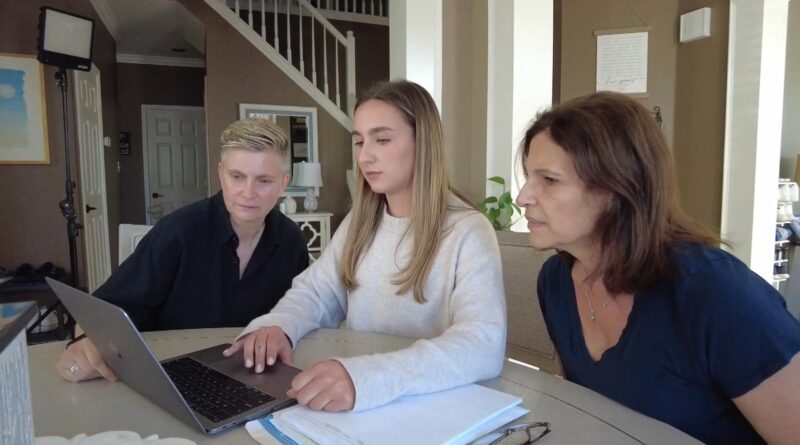 Stacey Hachenberg, left, and her partner, Sharon Fleming, right, review long-term care options with the help of Fleming’s daughter, Alexa Fleming, center.